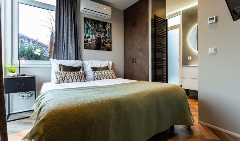 At our holiday parks, you can book a comfortable and modernly furnished chalet in Gelderland. The chalets are fully equipped and have a garden with a terrace. You can easily park your car next to the chalet. Moreover, your dog is more than welcome in the chalets. With the beautiful Veluwe and Achterhoek, this is the ideal province for walking with your dog. Would you like to send the home front enviable holiday photos every now and then? You can, because you have free wifi.