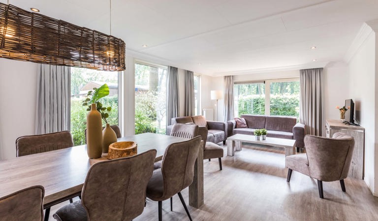 A holiday with your family, relatives or friends is extra fun. After all, we make holiday memories together. At the TopParken holiday parks, you can get away from it all and enjoy a holiday together in a holiday home for 8 people. Thanks to the luxury holiday homes, the wide range of facilities and the natural surroundings, it will be a holiday to remember. Our 8-person holiday homes are located in the middle of the Veluwe at Landgoed de Scheleberg, Recreatiepark Beekbergen and Bospark Ede.