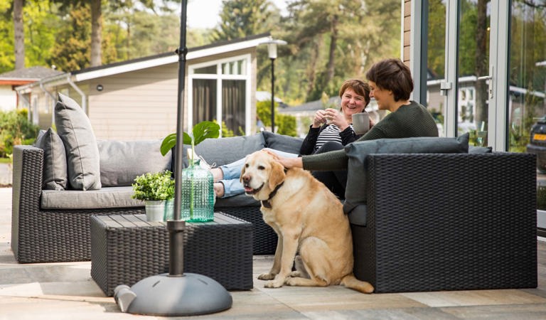 At many of our holiday parks, you can choose a holiday home with an enclosed garden for your dog. So your four-legged friend can play and run around in the garden while you read your favourite magazine with peace of mind. A relaxing holiday for both dog and owner. Our holiday homes are located on holiday parks with lots of nature, spread throughout the Netherlands. Think of the Veluwe, Limburg or the always enjoyable Brabant. The holiday homes accommodate up to 12 people and 2 pets. The atmospheric furnishings and modern facilities in your holiday home will pleasantly surprise you. Would you like to rent an extra luxurious cottage with an enclosed garden? Then choose a holiday home with wellness.